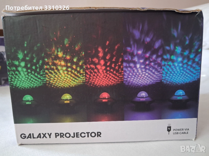 LED проектор "Galaxy Projector". Устройството създава красиви светлинни ефекти с червени, сини, зелени и многоцветни светлини, прожектирайки звездно небе и галактика на тавана или стените. Идеален за създаване на уютна и релаксираща атмосфера. Характеристики: