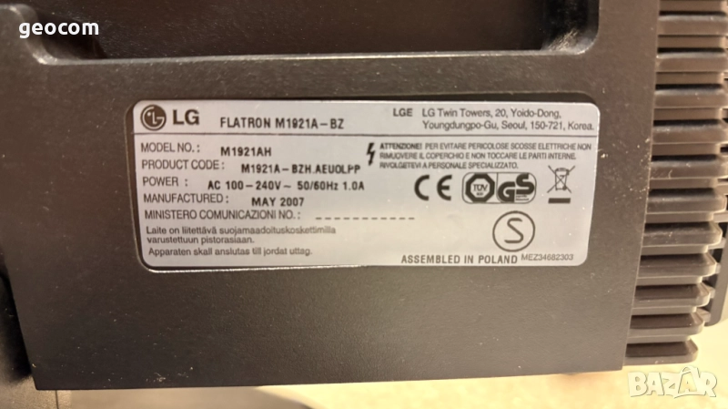 LG Flatron M1921AH TV/монитор (48.3см,1280x10240,8ms,D-SUB,SPK,Tuner)