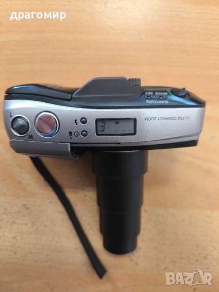 продавам лентов фотоапарат, много запазен, работи, комплект с кожен калъф, OLYMPUS OZ 140 S , PANORAMA, работи с една батерия CR123A 3v ,продава се без батерия, имам още много други фотоапарати, камери, обективи, чанти, светкавици, батерии, зарядни устройства, касети, филтри, ремъци, ленти, при закупуване на повече неща отстъпка