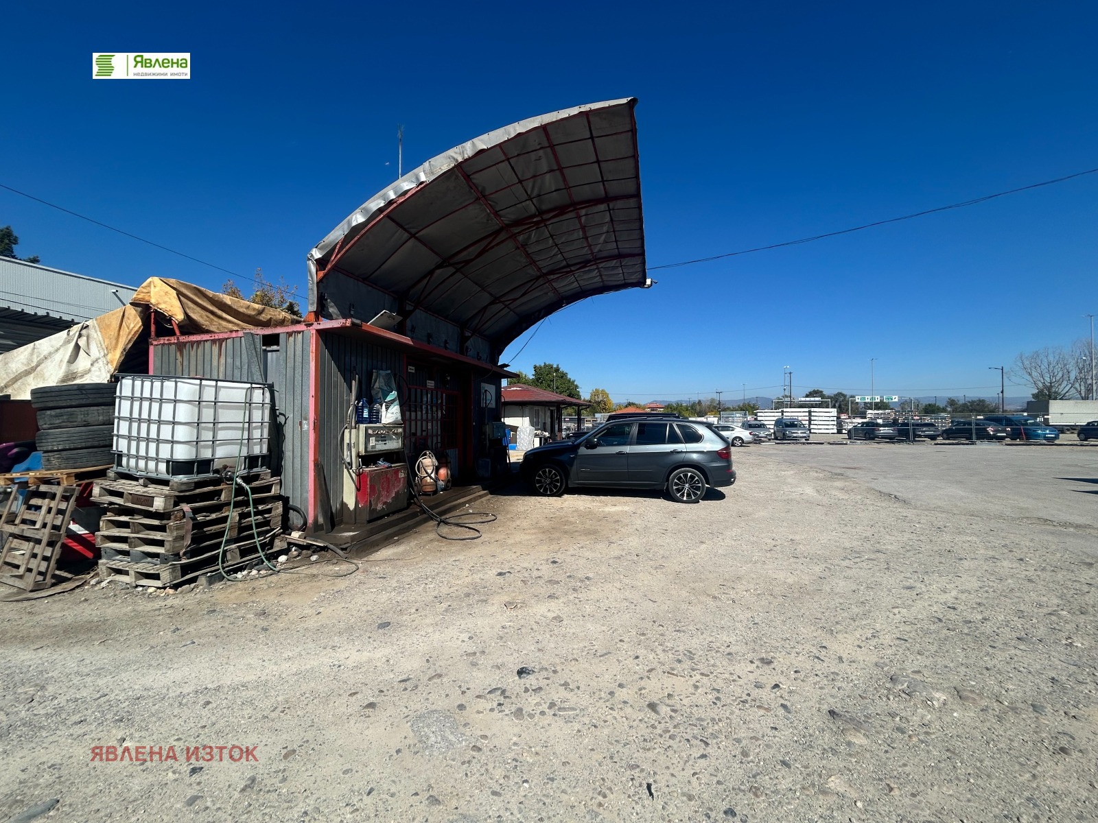 метално хале с квадратура 240 кв.м., ведомствена бензиностанция, допълнителни постройки за офисна част, място за охранители и санитарни помещения. Наличие на ТИР достъп. Ситуиран е на Софийския околовръстен път в непосредствена близост до бул. Цариградско шосе, позволявайки лесен достъп до автомагистрали 'Тракия' и 'Хемус', както и до водещи пътища. Парцелът е със собствен водоизточник и присъединен към електропреносната мрежа. Поставени са камери за видеонаблюдение. Металното хале е с размери 24/10 метра с височина от над 5м., разпологащо и с канал за преглед на превозно средство. Наличие на ведомствена бензиностанция. Отдава се от физическо лице.