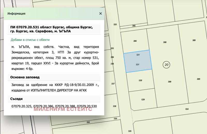 Продава ПАРЦЕЛ, гр. Бургас, Сарафово → Обява 52115647