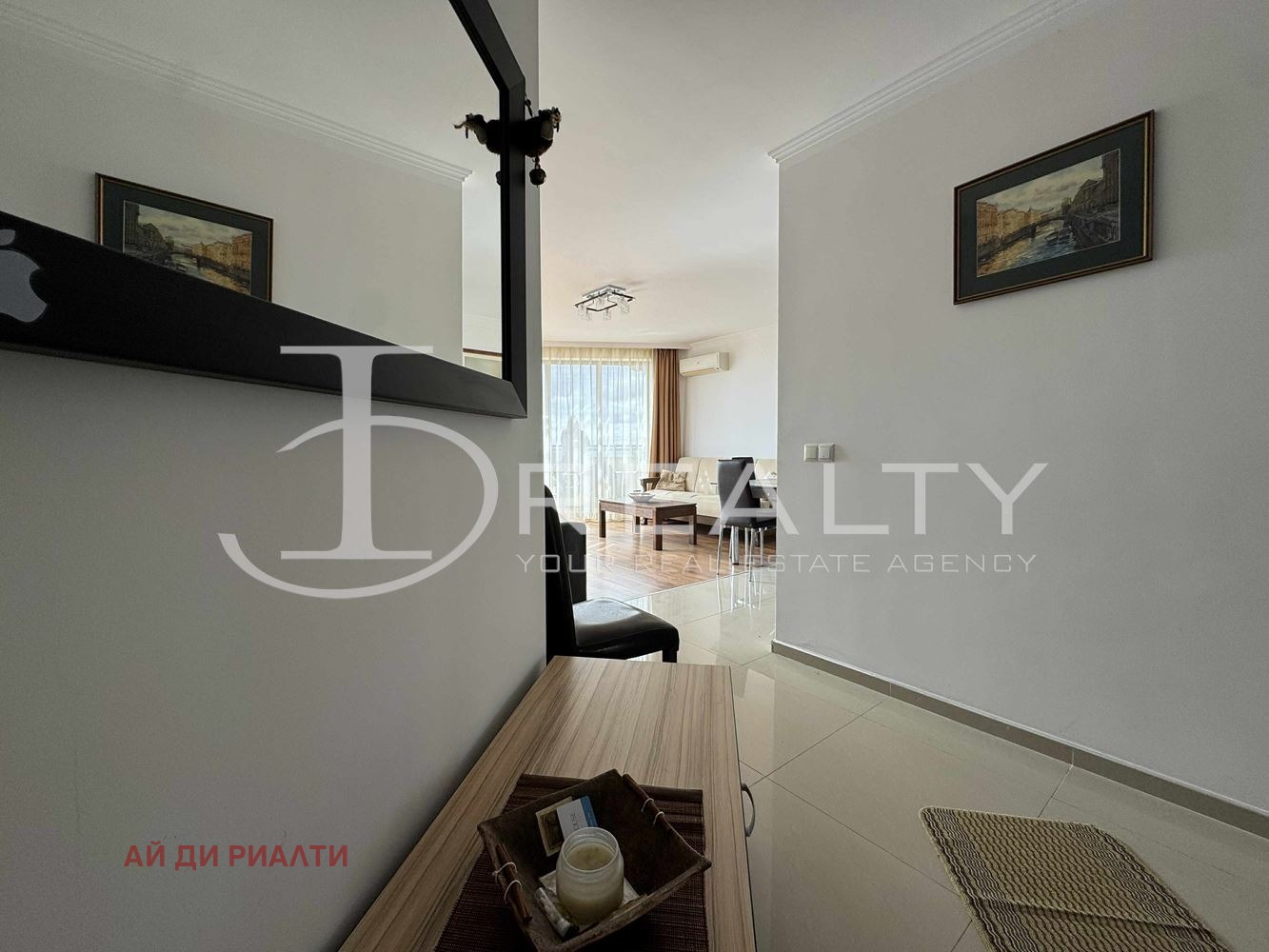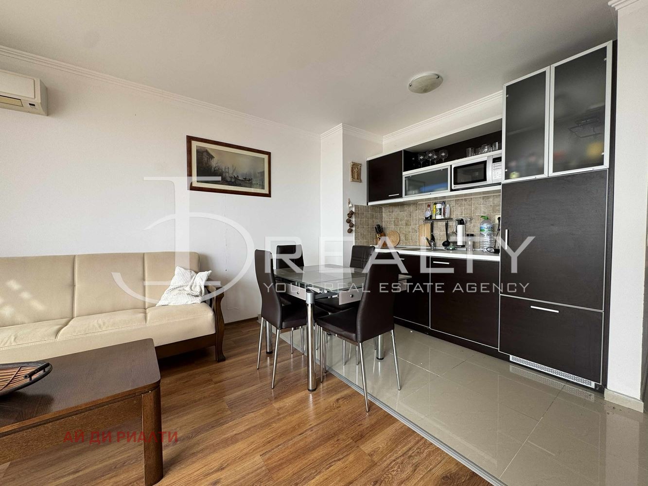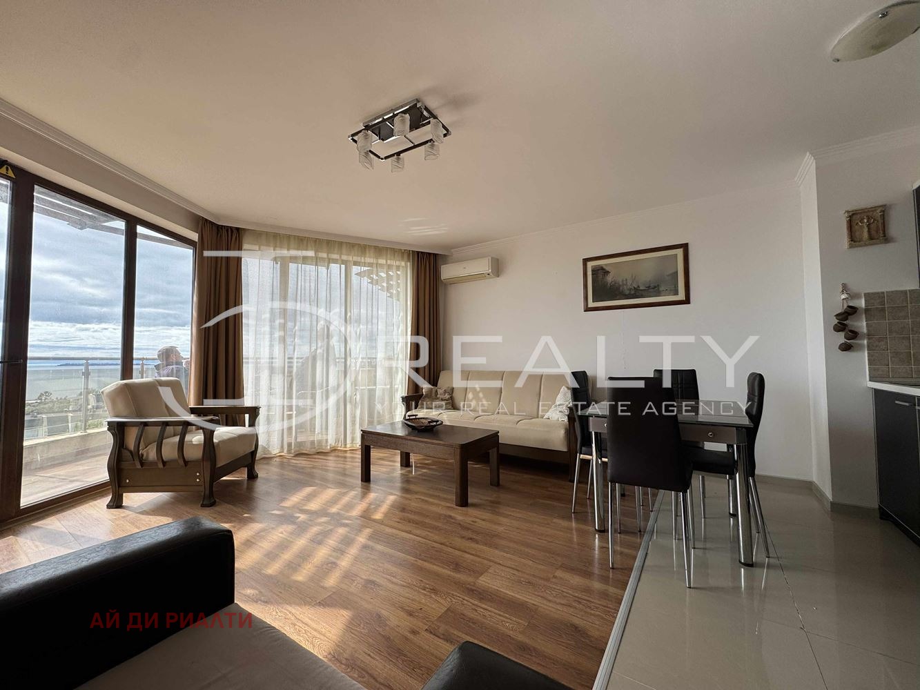 ID Realty Ви представя обзаведен двустаен апартамент в отлично устроен затворен комплекс гр. Свети Влас. Апартаментът се състои от антре, всекидневна с кухненска част, една спалня, баня с тоалетна и тераса с гледка към залива. Жилището се продава напълно обзаведено с наличните мебели и техника. Подходящ за целогодишно живеене или с цел инвестиция.