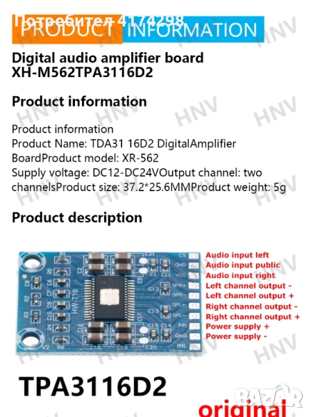 Чип на усилвателя: TPA3116D2