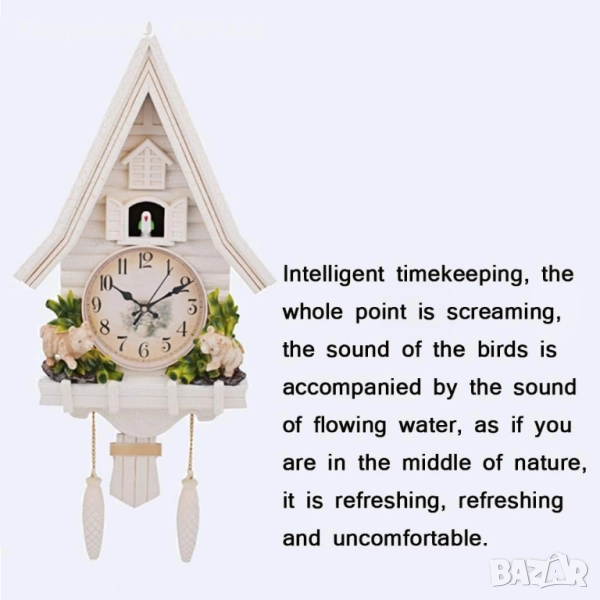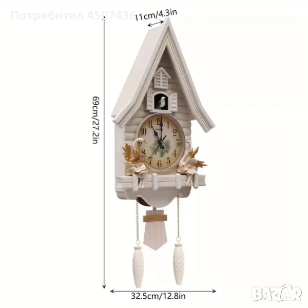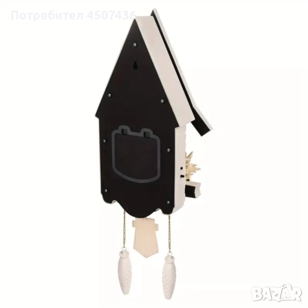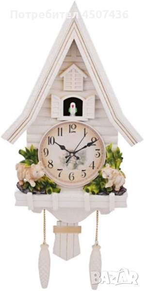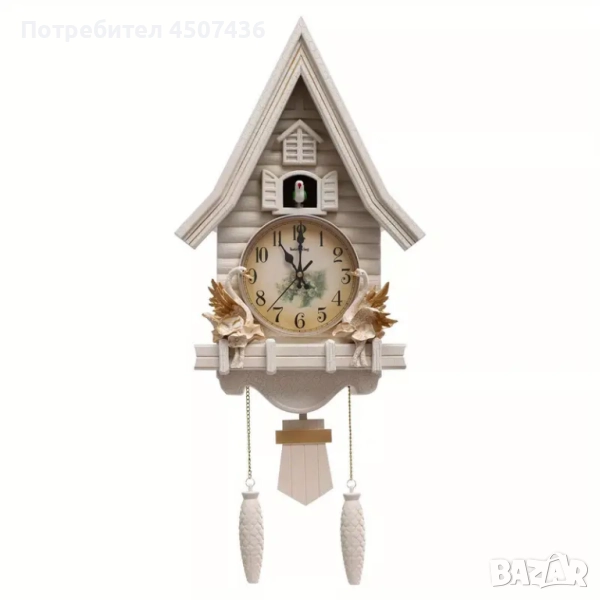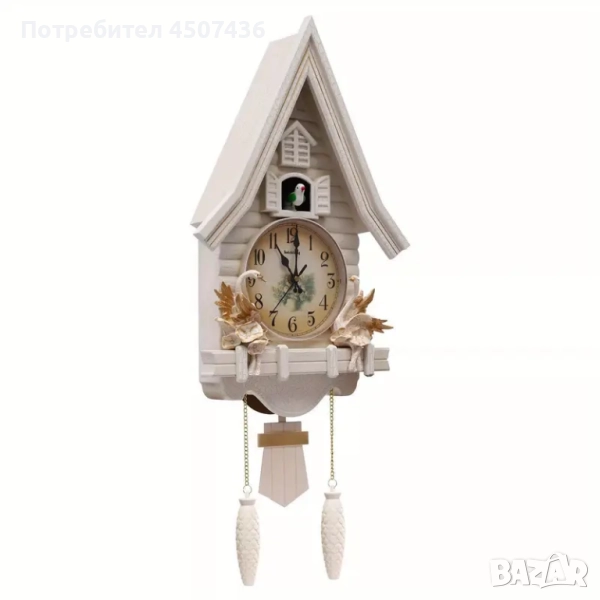 Бял стенен часовник с кукувица,форма на къща,безшумен, регулируема сила на звука