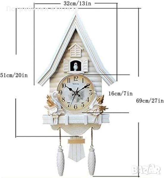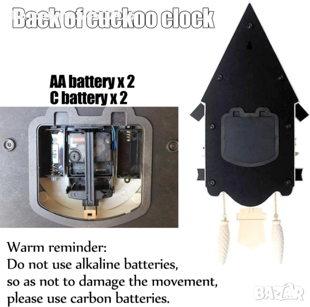 Часовникът с кукувица се захранва от батерии (не са включени).