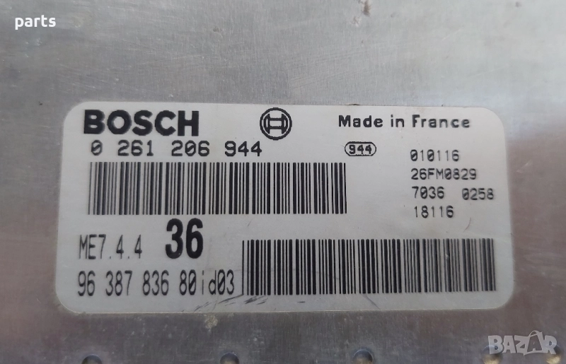 Компютър Двигател Пежо Партнер 1.6 - 1.8 Бензин - Ситроен Берлинго - 0261206944 - 9638783680, снимка 1 - Части - 52116198 Компютър Двигател Пежо Партнер 1.6 - 1.8 Бензин - Ситроен Берлинго - 0261206944 - 9638783680, снимка 2 - Части - 52116198 Компютър Двигател Пежо Партнер 1.6 - 1.8 Бензин - Ситроен Берлинго - 0261206944 - 9638783680, снимка 3 - Части - 52116198 Компютър Двигател Пежо Партнер 1.6 - 1.8 Бензин - Ситроен Берлинго - 0261206944 - 9638783680, снимка 4 - Части - 52116198 Компютър Двигател Пежо Партнер 1.6 - 1.8 Бензин - Ситроен Берлинго - 0261206944 - 9638783680, снимка 5 - Части - 52116198 Компютър Двигател Пежо Партнер 1.6 - 1.8 Бензин - Ситроен Берлинго - 0261206944 - 9638783680, снимка 6 - Части - 52116198 1/6