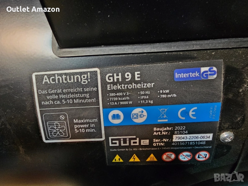 Вентилаторна печка GUDE 85104 GH 9 E, 9 kW, Напрежение: 400 V