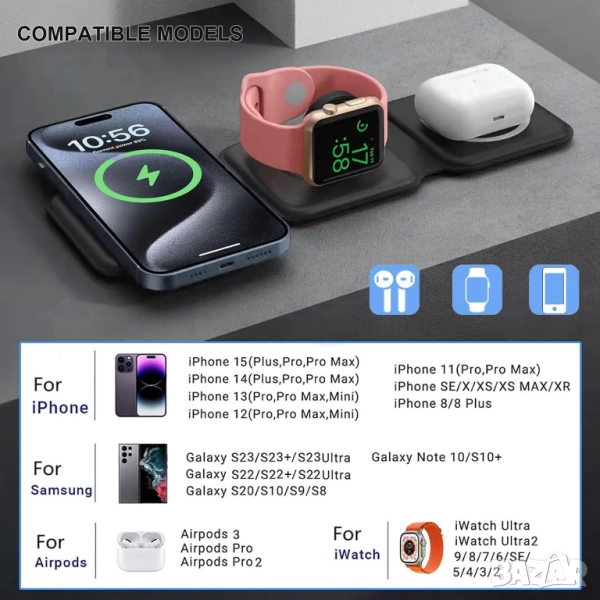 Магнитно безжично зарядно  3 в 1, снимка 1 - Безжични зарядни - 52116552 Магнитно безжично зарядно  3 в 1, снимка 2 - Безжични зарядни - 52116552 Магнитно безжично зарядно  3 в 1, снимка 3 - Безжични зарядни - 52116552 Магнитно безжично зарядно  3 в 1, снимка 4 - Безжични зарядни - 52116552 Магнитно безжично зарядно  3 в 1, снимка 5 - Безжични зарядни - 52116552 Магнитно безжично зарядно  3 в 1, снимка 6 - Безжични зарядни - 52116552 Магнитно безжично зарядно  3 в 1, снимка 7 - Безжични зарядни - 52116552 1/7