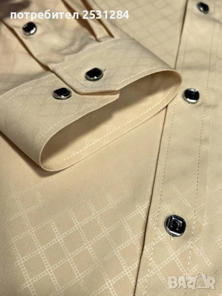 бежова риза със стилни копчета и дълги ръкави.