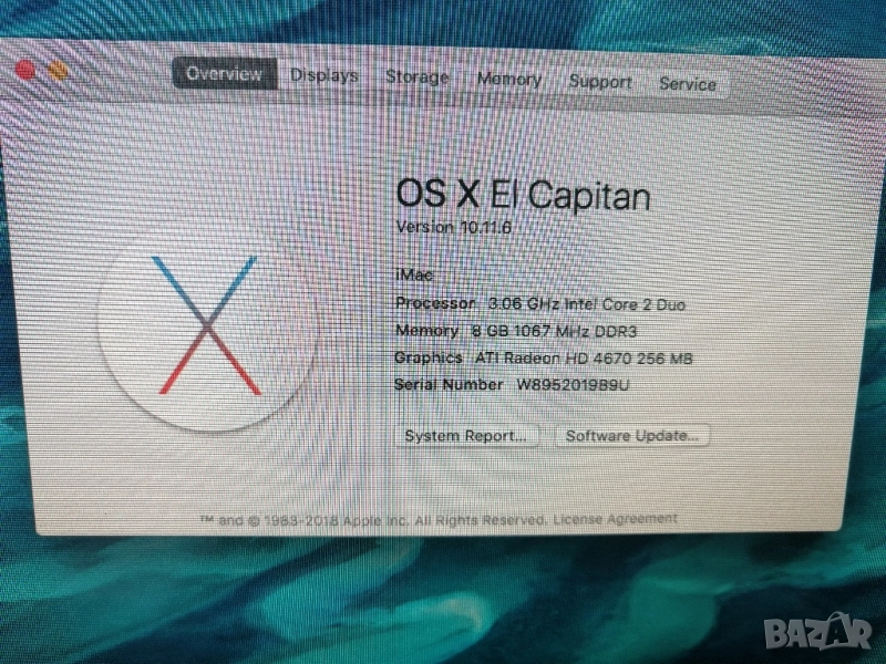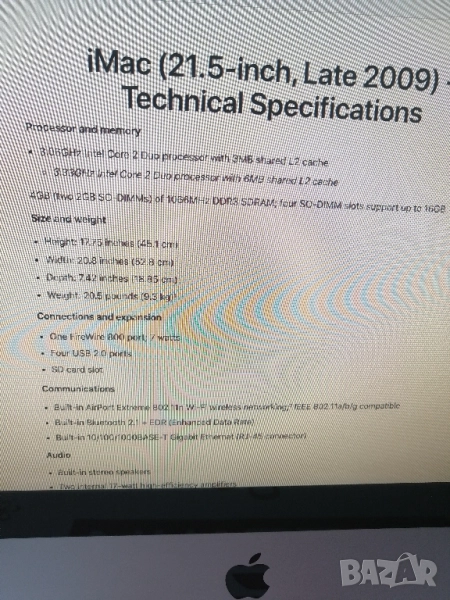 iMac "Core 2 Duo" 3.06 21.5-инчов алуминиев (края на 2009 г.) разполага с 3.06 GHz Intel "Core 2 Duo" процесор (E7600) с две независими процесорни "ядра" на един силициев чип, 3 MB споделен кеш от ниво 2, системна шина 1066 MHz,