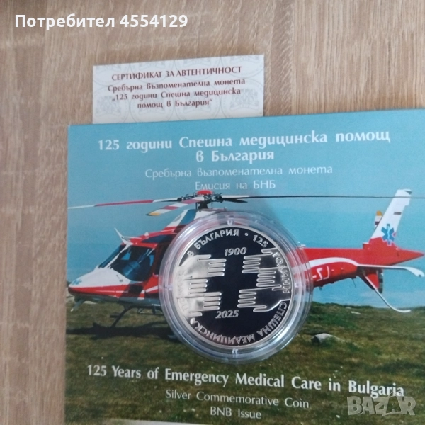 Сребърна монета 125 години спешна медицинска помощ в България → Обява 52116737