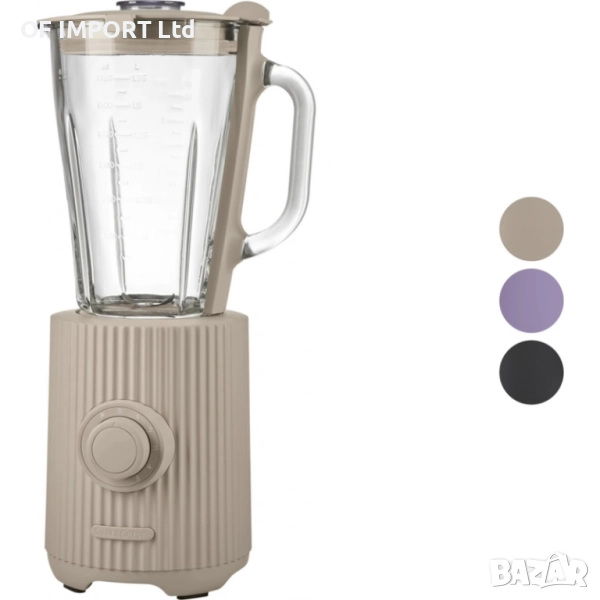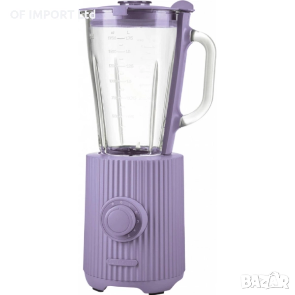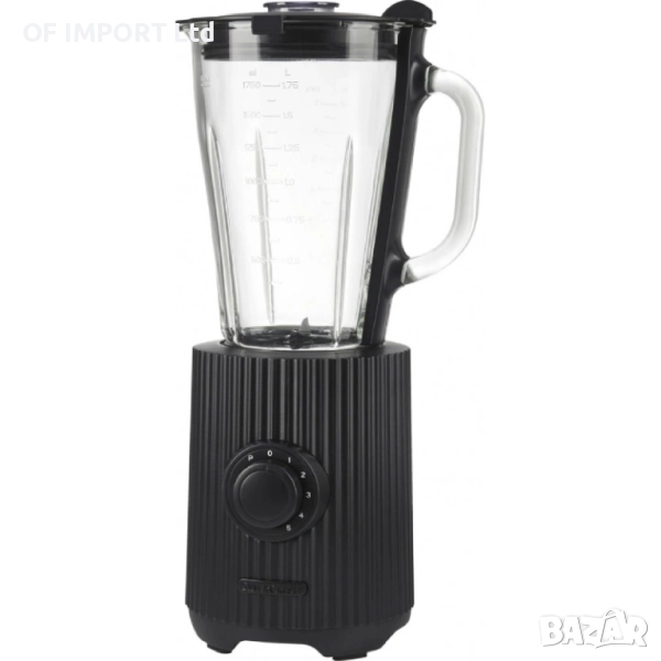 Смесителна кана, изработена от висококачествено и здраво стъкло с използваем обем от приблизително 1,75L и практична мерителна чаша.