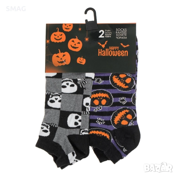 Комплект от 2 чифта чорапи с мотиви на череп и тиква, подходящи за Halloween / Хелоуин или карнавални празненства. Удобни за носене и идеални за завършване на тематична визия.
