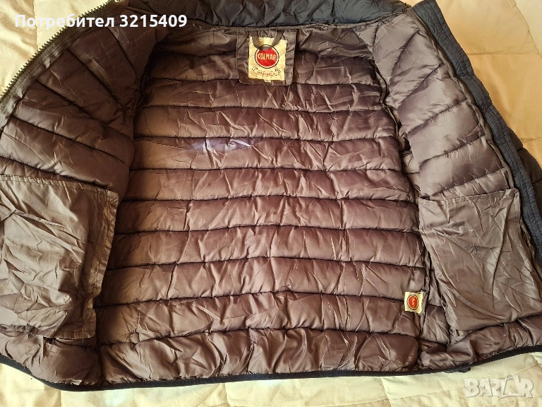 Якето е оригинално Colmar,отлично състояние, качулката е изгубена.Тъмно синьо. От рамо до рамо 44 см,от мишница до мишница 54 см,дължина от рамо до долу 61 см.