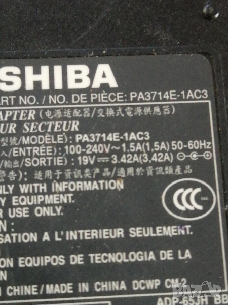 Оригинално зарядно за лаптоп TOSHIBA 19V, 3,42A. → Обява 52117153