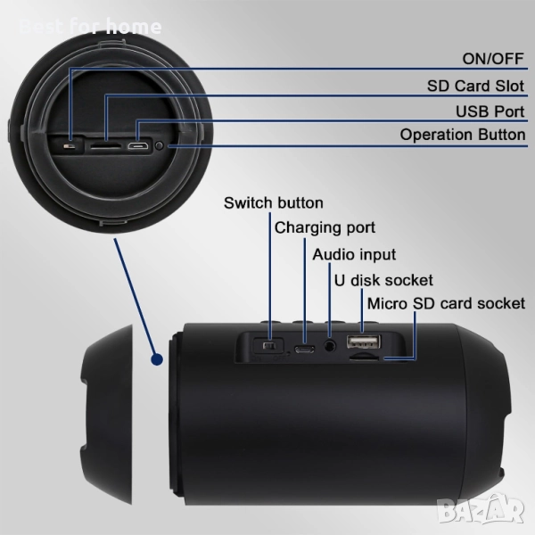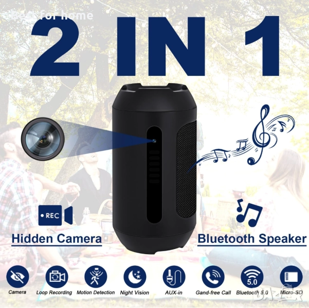 【2 в 1】 OTADUG камерата е шпионска камера, маскирана като „Bluetooth високоговорител“. Шпионската камера-високоговорител не само записва видео в HD, но и се радва на изключително силен звук без изкривявания. Страничният бутон контролира функцията за Bluetooth аудио, а долният бутон контролира функцията за видеозапис. Можете да се наслаждавате на музика и видеозапис едновременно.