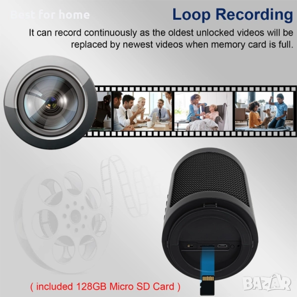 【Циклов запис】 Безплатната SD карта от 128 GB съхранява видеоклипове циклично и ще презапише най-старите видеоклипове, ако SD картата е пълна. Не е нужно да харчите допълнителни пари за карти с памет. Пакетът включва безплатни 128 GB, които ви позволяват да записвате видеоклипове за дълго време.
