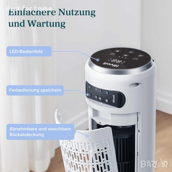 Лесен за употреба: подобреният и мощен мотор, със скорост на вентилатора до 25 м³/мин, позволява на вентилатора тип „кула“ да охлажда помещението и да ви осигурява прохлада