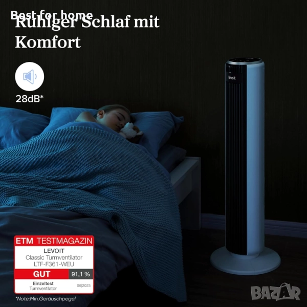 Levoit - Куловен, тих вентилатор с 4 режима, 5 скорости с дистанционно управление