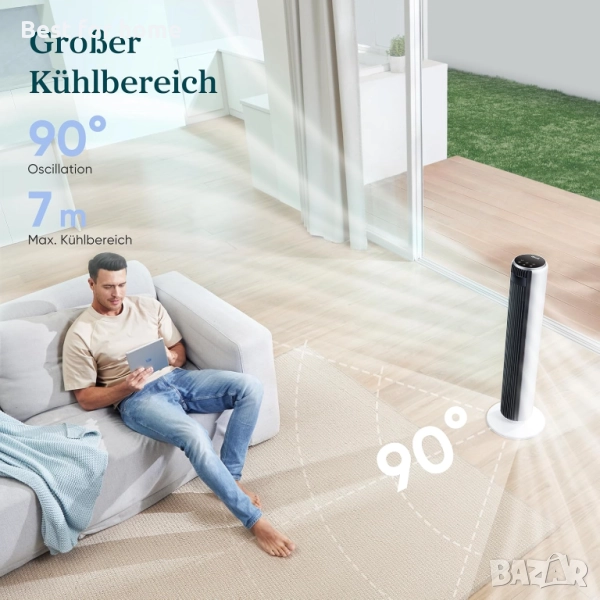 Опционалното осцилиране от 90 градуса по Целзий на вентилатора на кулата осигурява по-широко покритие, така че този осцилиращ вентилатор позволява на свежия въздух да циркулира във всеки ъгъл на вашата стая.