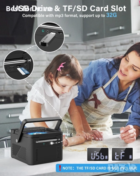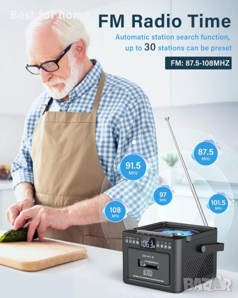 【Комбинация от CD и касетофон】: Бумбокс касетофонният CD плейър ви позволява да се наслаждавате на любимите си CD-та, съвместими с CD, CD-R, CD-RW без никакви заседвания. Можете също така да настроите функциите AB Repeat и Program в режим USB, TF, AUX и жак за слушалки. Режими на повторно възпроизвеждане: единична песен, всички песни, интро и произволно възпроизвеждане. Преносимият бумбокс CD плейър добавя и касета, така че можете да записвате любимата си музика и програми с празни касети в режим CD, FM, USB, TF, Bluetooth и AUX. (забележка: не може да записва вокали)