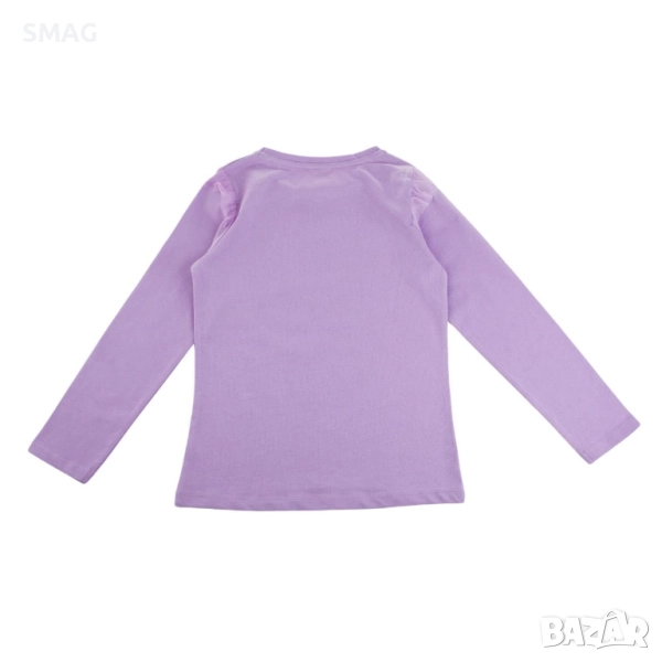 Стилна и удобна Halloween / Хелоуин блуза от мек памук в лилав цвят с декоративен тюл на раменете и щампа с момичета и тикви. Идеална за празнични визии и карнавални костюми за момичета.