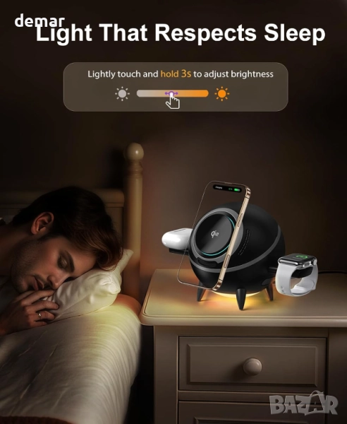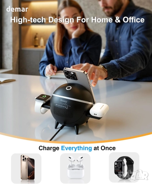 Тази 4-в-1 безжична зарядна станция осигурява истинско 15W Qi2-сертифицирано бързо зареждане, захранвайки iPhone от 0% до 50% за около 36 минути, като същевременно поддържа MagSafe и всички Qi-съвместими устройства. Тя може да зарежда едновременно смартфон, смарт часовник и слушалки, а вградената LED нощна светлина добавя успокояваща атмосфера. Проектирана както за потребители на Apple, така и за потребители на Samsung, тя осигурява широка съвместимост между телефони, часовници и слушалки. Въртящата се стойка за зареждане позволява употреба без ръце и сензорно управление за лесно активиране, докато елегантният ѝ сферичен дизайн е устойчив на пръстови отпечатъци и включва вентилация, за да се предотврати прегряване. Доставя се с 30W адаптер, USB-C кабел и ръководство, тя поддържа зареждането ефективно, организирано и стилно.