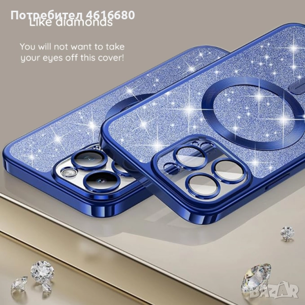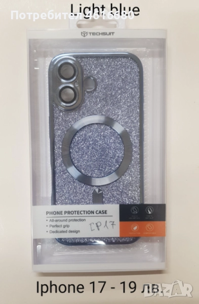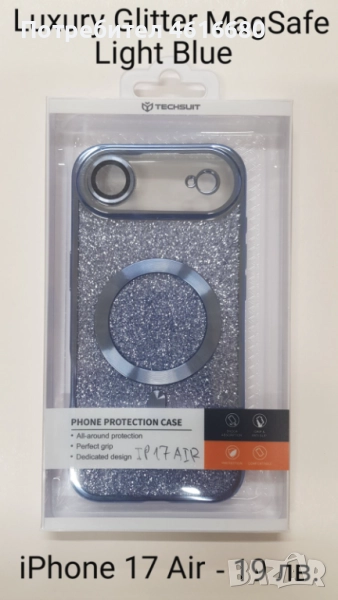 Калъф Techsuit - Luxury Glitter MagSafe - iPhone 17 - черен, Light Blue;