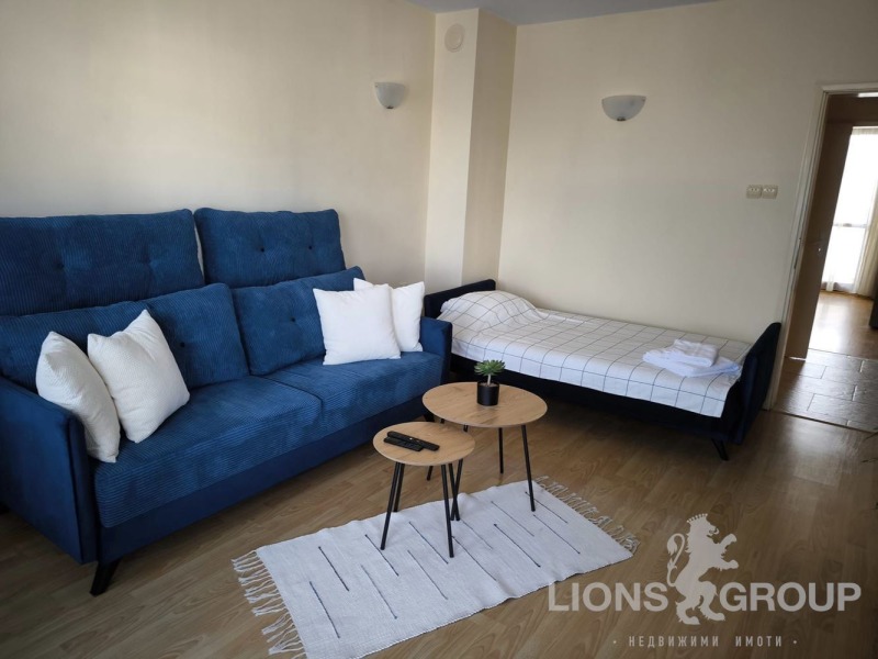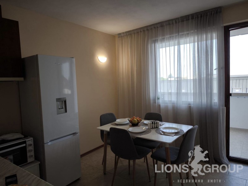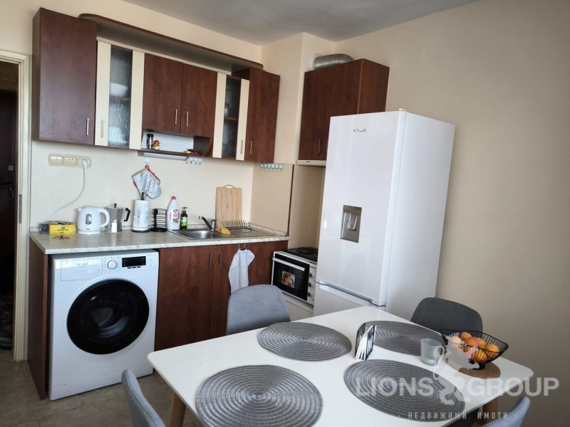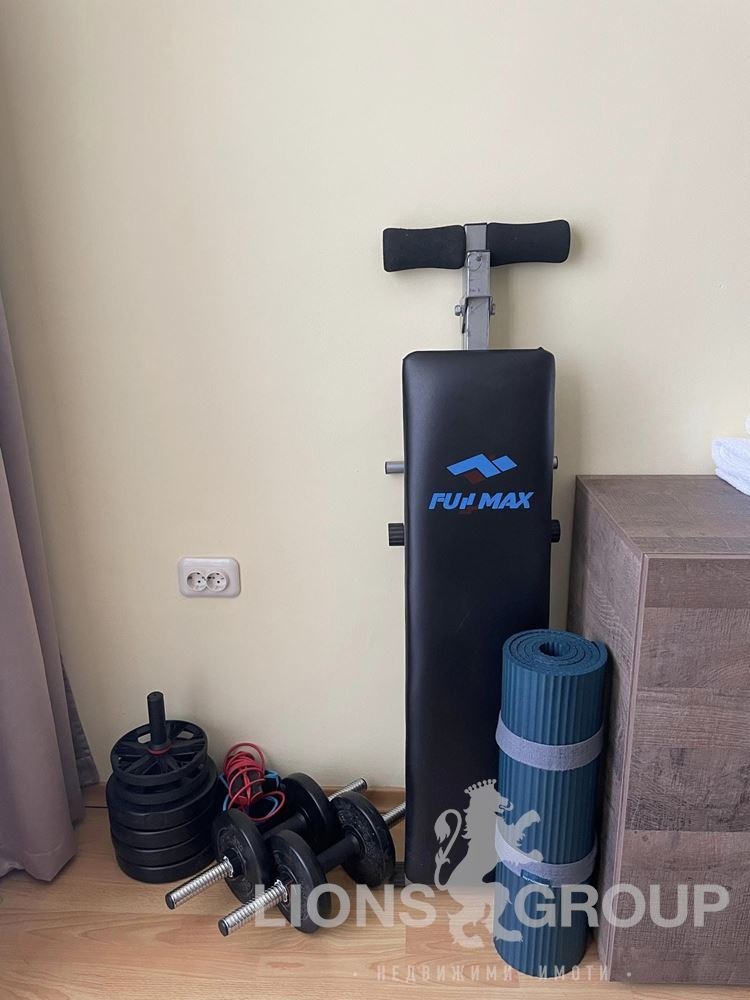 Обзаведена кухня с всичко необходимо, хладилник, пералня със сушилня и голяма слънчева тераса за релакс на въздух ; една спалня за двама 160/200 см. с гардероб и скрин, фитнес уреди и голяма тераса; в хола - два удобни разтегателни дивана с размер 120/190 см. /всеки в разпънато състояние/, интернет, кабелна телевизия, голям телевизор и цветя, за релакс ; баня и самостоятелен гараж в паркониво.