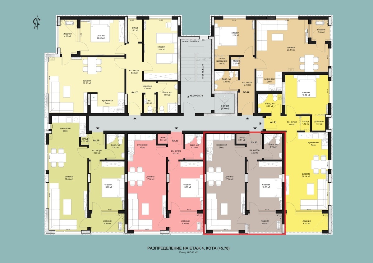 Апартамента е с обща площ 69.95 кв.м., разположен в съвременна жилищна сграда с асансьор.