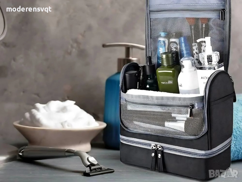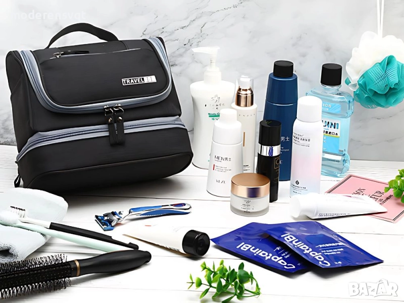 УДОБНА КОЗМЕТИЧНА ЧАНТИЧКА ЗА ПЪТУВАНЕ С ФУНКЦИЯ ЗА ЗАКЕСВАНЕ