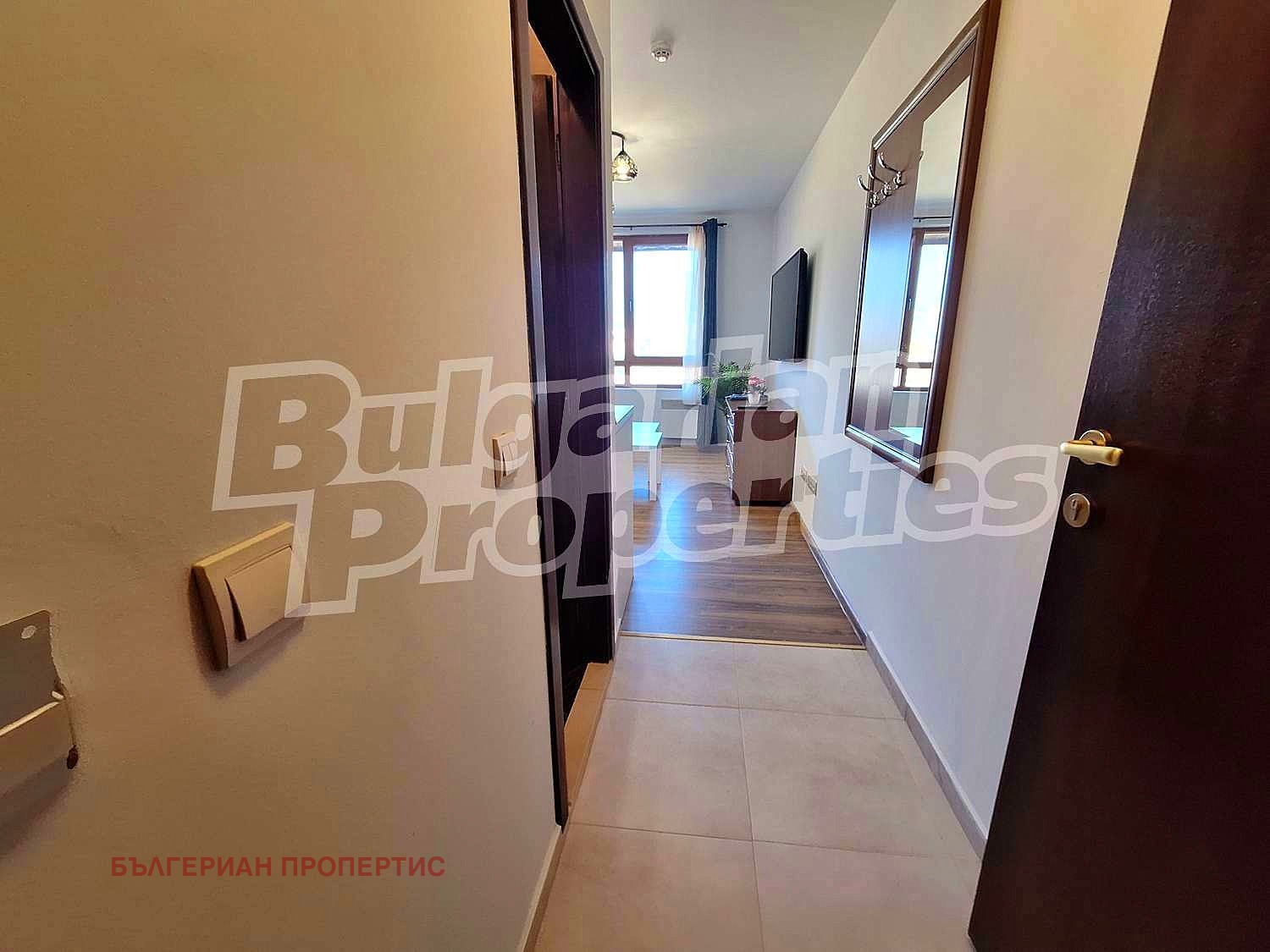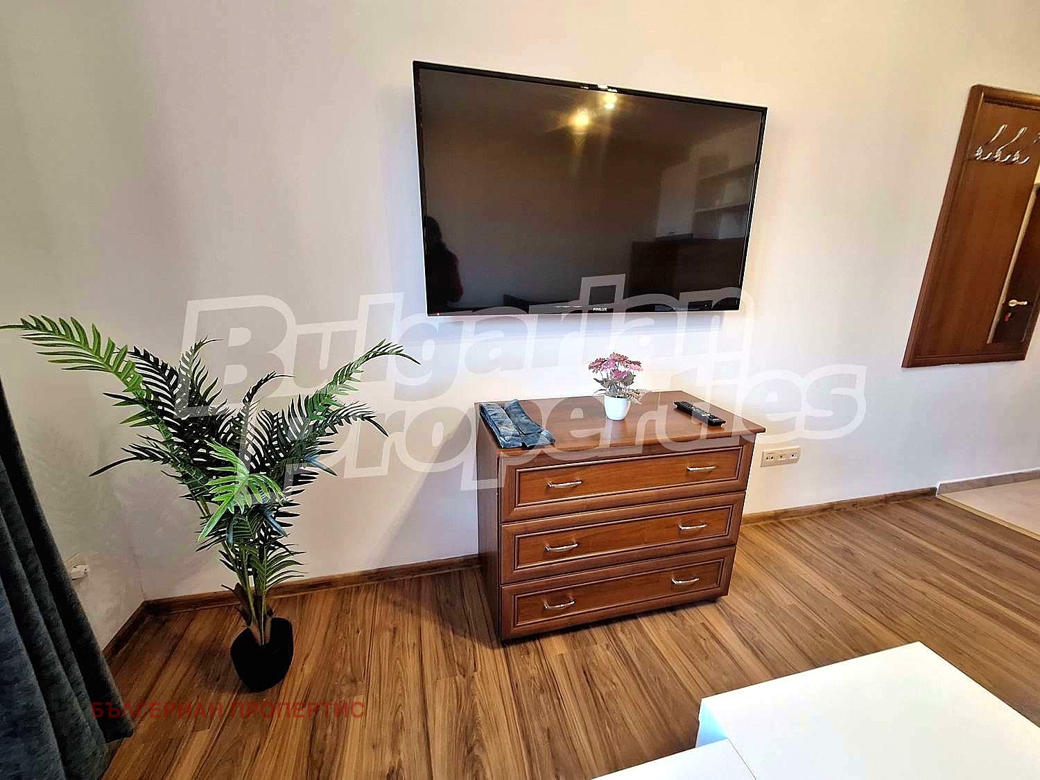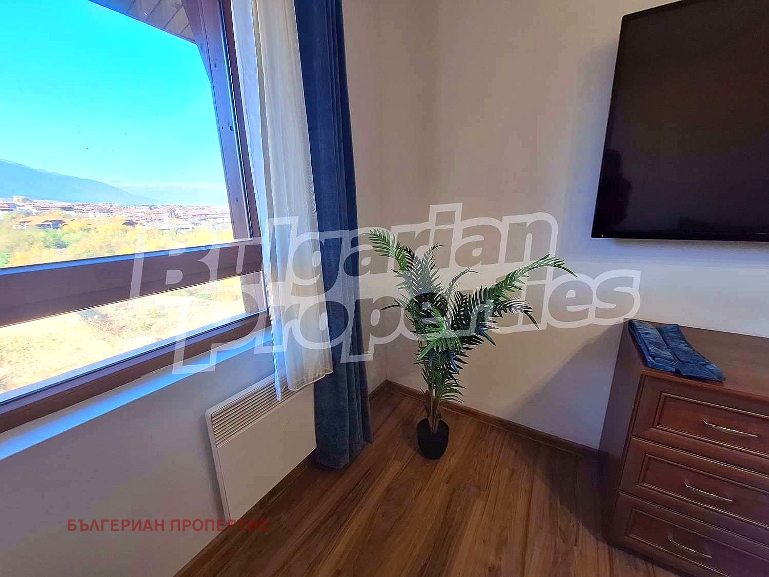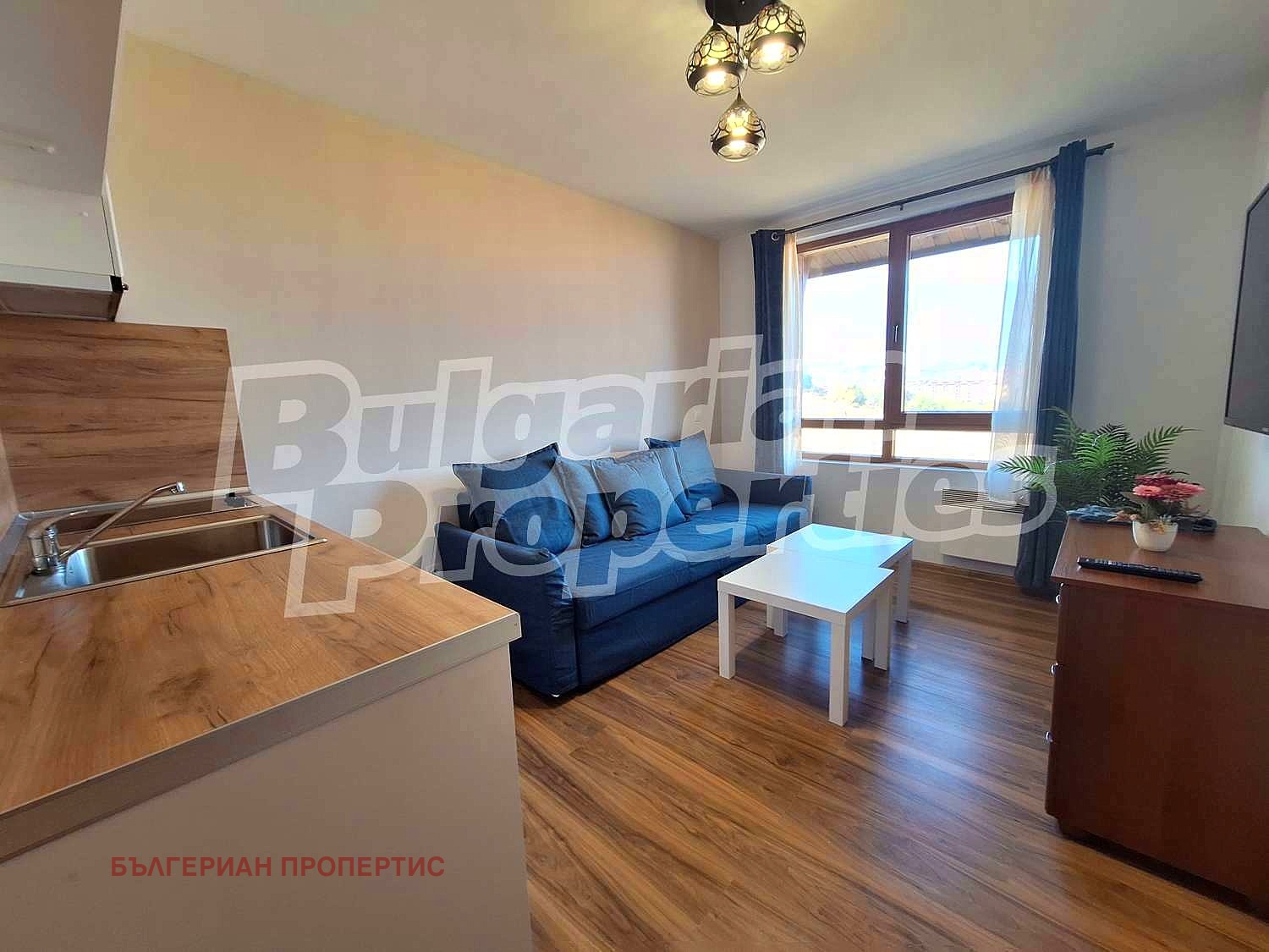 Студиото се състои от дневна зона с място за сън, кухненски кът и трапезария, както и модерна баня с душ кабина. Пространството е оптимизирано с внимание към детайла, така че да предлага всички удобства, необходими както за постоянно живеене, така и за ваканционно ползване или отдаване под наем. Въпреки че имотът няма тераса, той предлага красива гледка към Пирин планина, която създава усещане за спокойствие и планинска хармония.