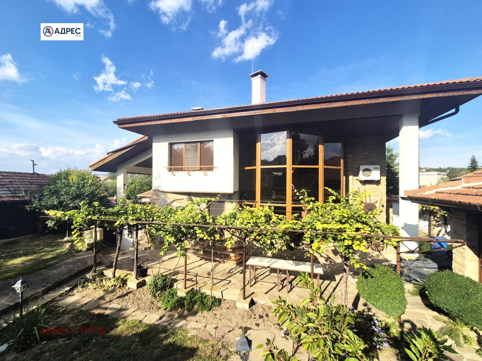 Предлагаме Ви уникален имот в с. Красен комфорт, стил и природа в едно. Изключителен имот, разположен в близост до централната част на селото. Дворното място е с площ 609 кв. м, терасирано и прекрасно аранжирано, с обособени кътове за отдих и забавления. На разположения са външна кухня с площ 20 кв.м, оборудвана и обзаведена с всичко необходимо; просторна покрита беседка с масивна пещ; кът с дървена пергола, цветни лехи и каменни алеи, които ги свързват и придават усещане за уют и хармония с природата. Жилищната сграда е двуетажна, с разгъната застроена площ 120 кв.м, включваща широка тереса с панорамна гледка, маза с площ 30 кв. м. Прилепен към сградата има масивен гараж с площ 24 кв. м и покрито паркомясто. Първият етаж предлага отворено пространство с просторна кухня, трапезарна част и дневна зона с кътове за почивка. Акцент в интериора е изградената камина. Изключително светло и просторно помещение с великолепни витрини, които разкриват чудесна гледка към двора и внасят усещане за близост до природата дори и вътре. До втория етаж води елегантно, извито стълбище с красив дизайн, където са разположени две уютни спални и атрактивна баня с тоалетна. Имотът е с изградена отоплителна система на пелети, а за охлаждане има монтирани климатици. Предлаганият имот е в отлично състояние и се предлага с наличното обзавеждане и оборудване. Къщата е проектирана с мисъл за комфорт и удобство - както за целогодишно обитаване, така и за уикенд почивка сред тишина и природа.