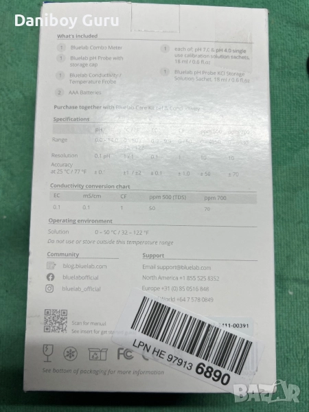 - Диапазон на измерване: 0.00-14.00 pH, 0-9.9 EC, 0-99 CF or 0-1990 ppm 0-1990 ppm