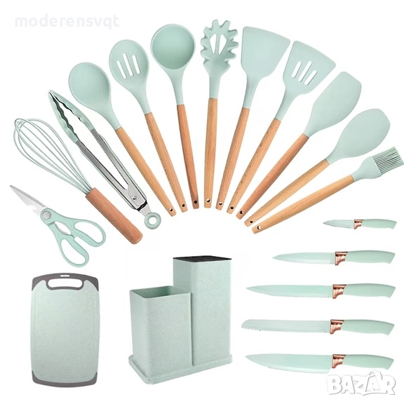✅ Висококачествени материали: топлоустойчив силикон, дърво, неръждаема стомана