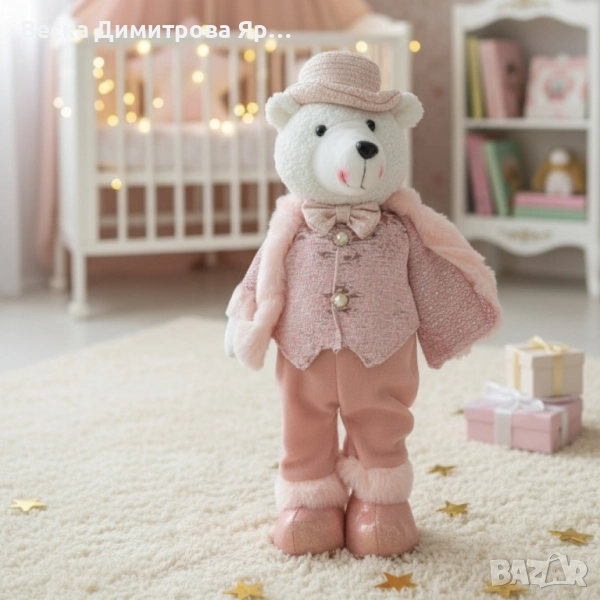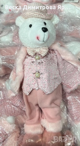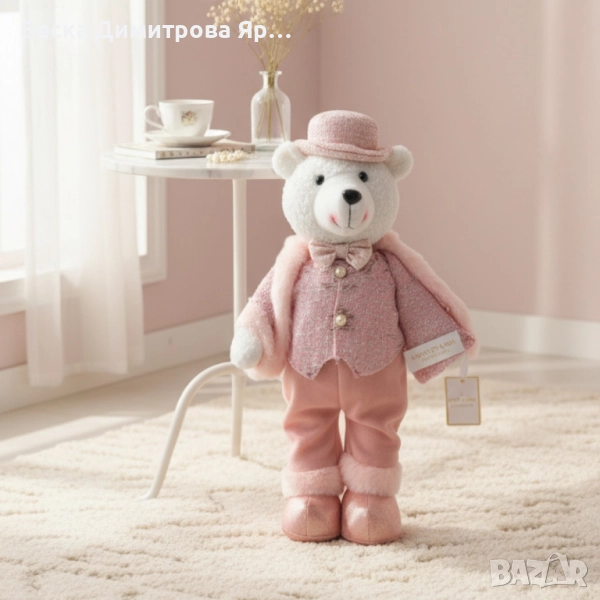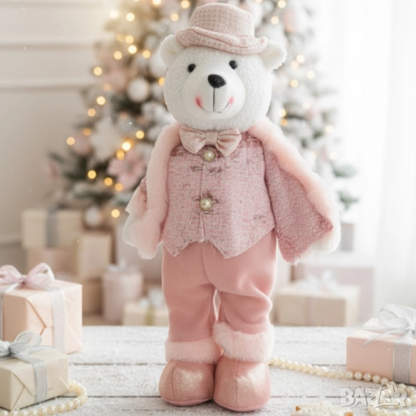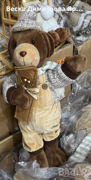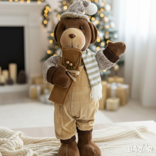 Тип продукт: Декоративна стояща плюшена фигура – мече (сезонна/целогодишна украса);