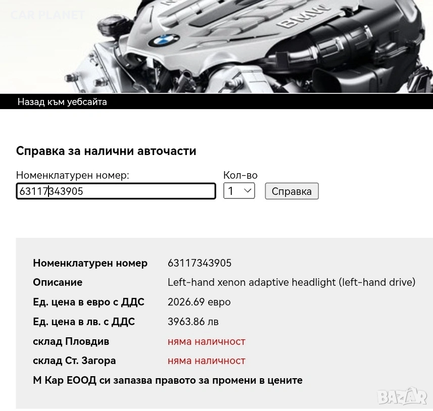 Цената е за брой необорудван фар!