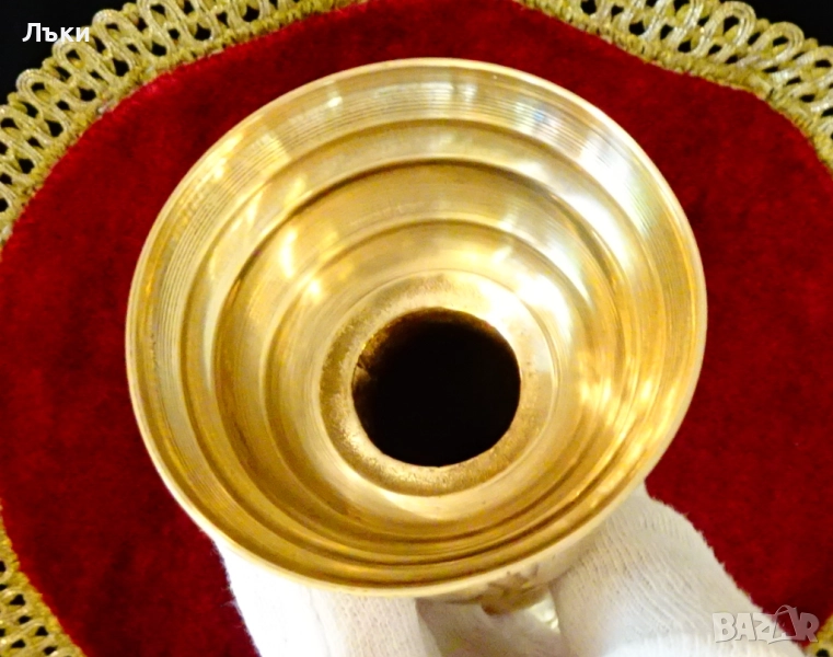 масивен бронз със златен блясък и ефектен дизайн.Височина 15 см.,диаметър 7 см.,тегло