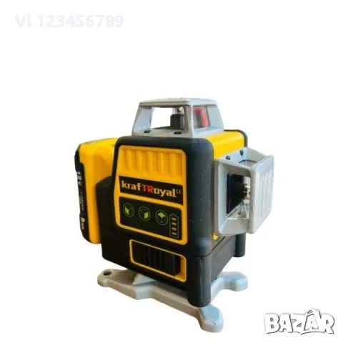 4D лазерен нивелир с 16 линии (четири точков) - със зелен лазер и магнитна стойка за стени и тавани KraftRoyal
