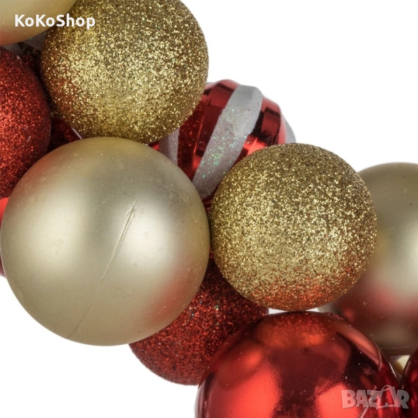 Коледен гирлянд от златисти и червени топки. Идеален избор за украса на елха,маса и др.