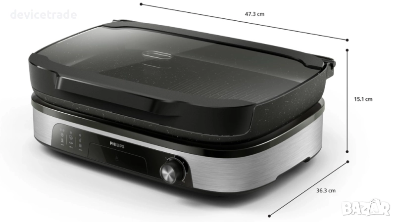 Стъкленият капак запечатва ароматите, осигурявайки вкусни ястия на скара и по-чист плот.