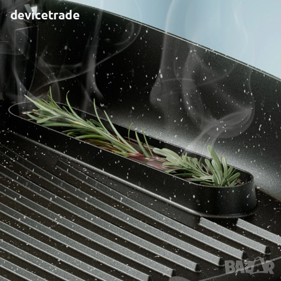 Използвайте оребрената страна за печене на месо и риба на скара, а плоската страна – като тиган за яйца, бекон, зеленчуци и още.