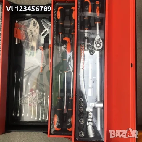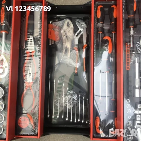 Сгъваем метален куфар с 5 отделения, пълен с най-необходимите инструменти - 85 части