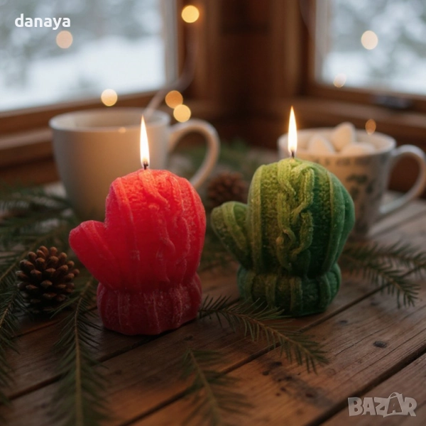 Коледна ароматизирана свещ с оригинален дизайн тип „ръкавичка“