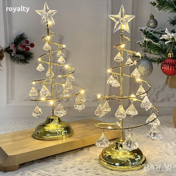 Акумулаторна нощна лампа LED нощна лампа коледна елха с ефект от диаманти. ЗАХРАНВАНЕ НА БАТЕРИЯ - Кристалните лампички за коледно дърво се захранват от 3 AAA батерии (не са включени)