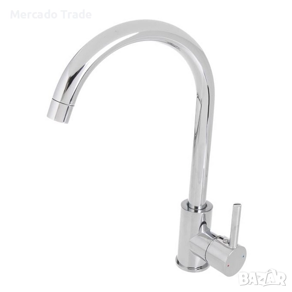 Кухненски смесител за мивка, изработен от неръждаема стомана 304 в лъскав сребрист цвят.