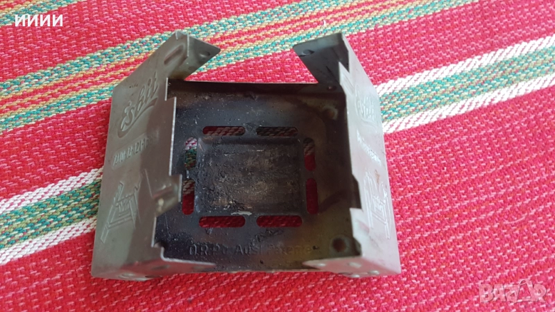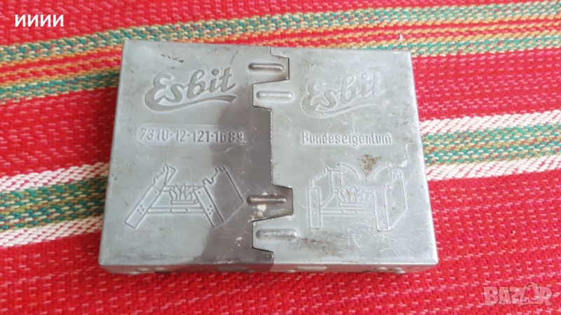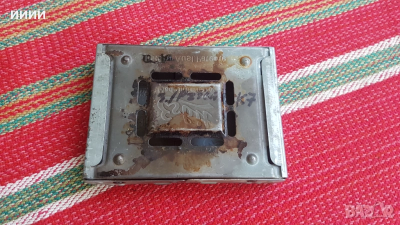 Ползван от немските войски на вермахта през Втората световна война,като окопен.Имал съм го и със свастика. В затворено състояние 10 на 7,5 см.