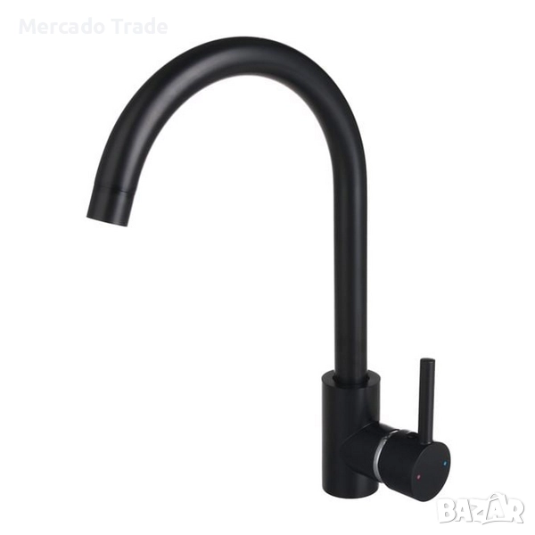 Кухненски смесител за мивка, изработен от неръждаема стомана 304 в черен матов цвят.