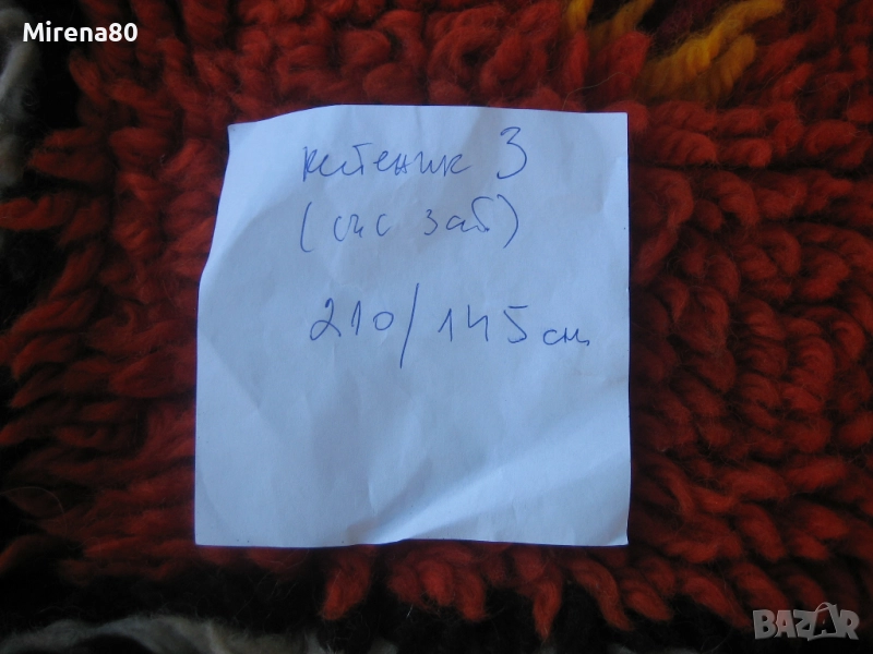 Вложен много ръчен труд и душа. Размери - 210/145 см. С малка забележка (няколко см) - вижте посл. снимка - предполагам поправима. За София - възможно лично