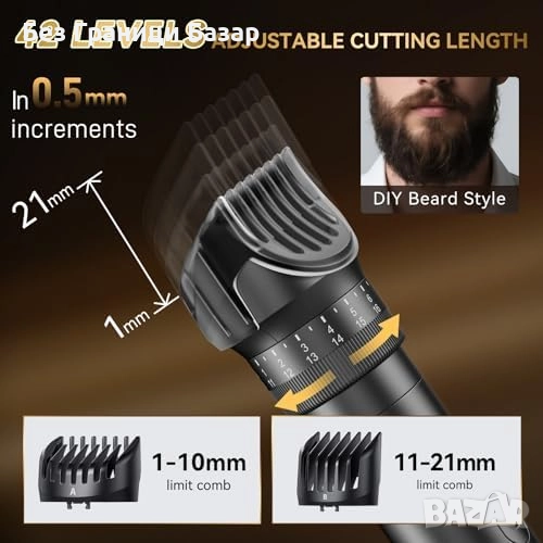 Нов Мъжки електрически тример 42 дължини, тиха работа, 120 мин батерия